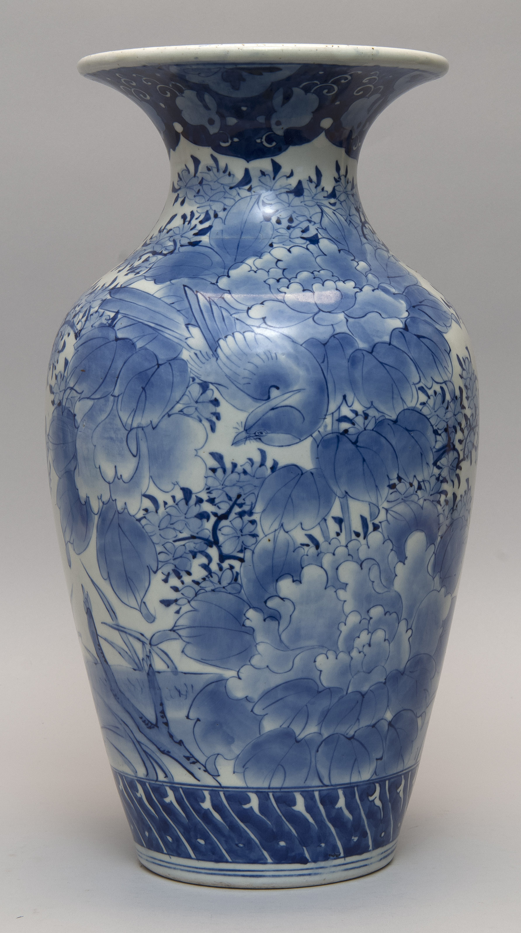 JAPANESE BLUE AND WHITE PORCELAIN VASE Meiji Period With tree and floral decoration