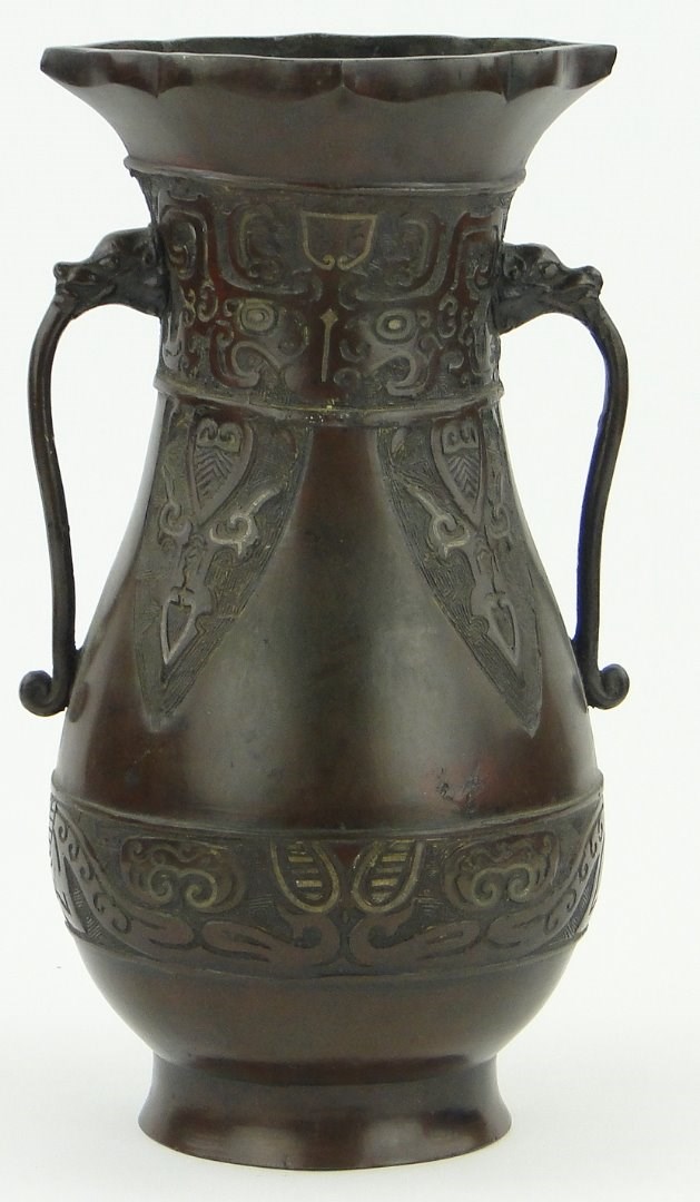 Japanese bronze 2-handled vase, signed, height 12.5''.