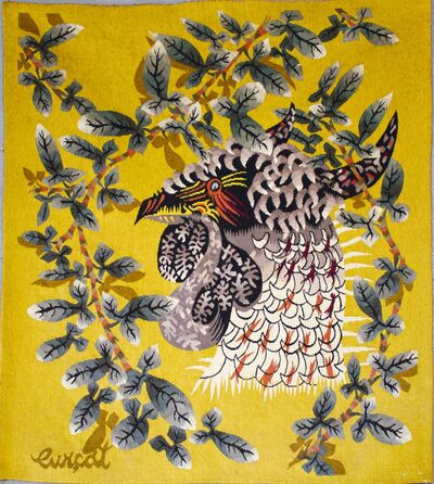 Rooster head, Aubusson tapestry, R. Picaud workshop, signed on the bolduc, 102x85 cm