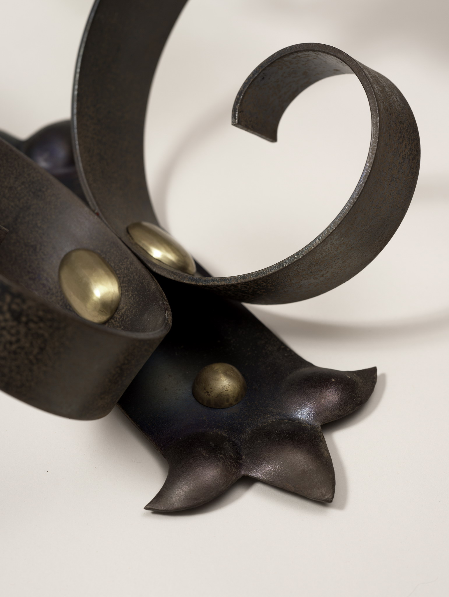 Ensemble de 7 appliques doubles composées d'une embase en fer forgé flambé