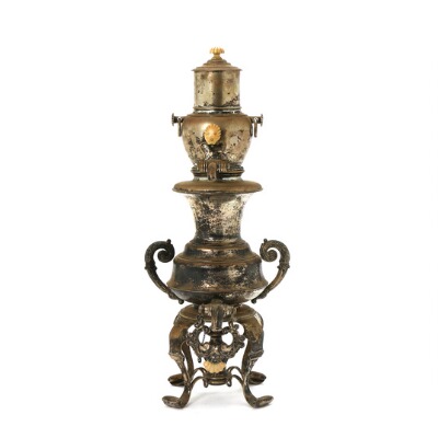 A Russian silver late Empire samovar, gadrooned edges, handles and stopper with stylized foliage