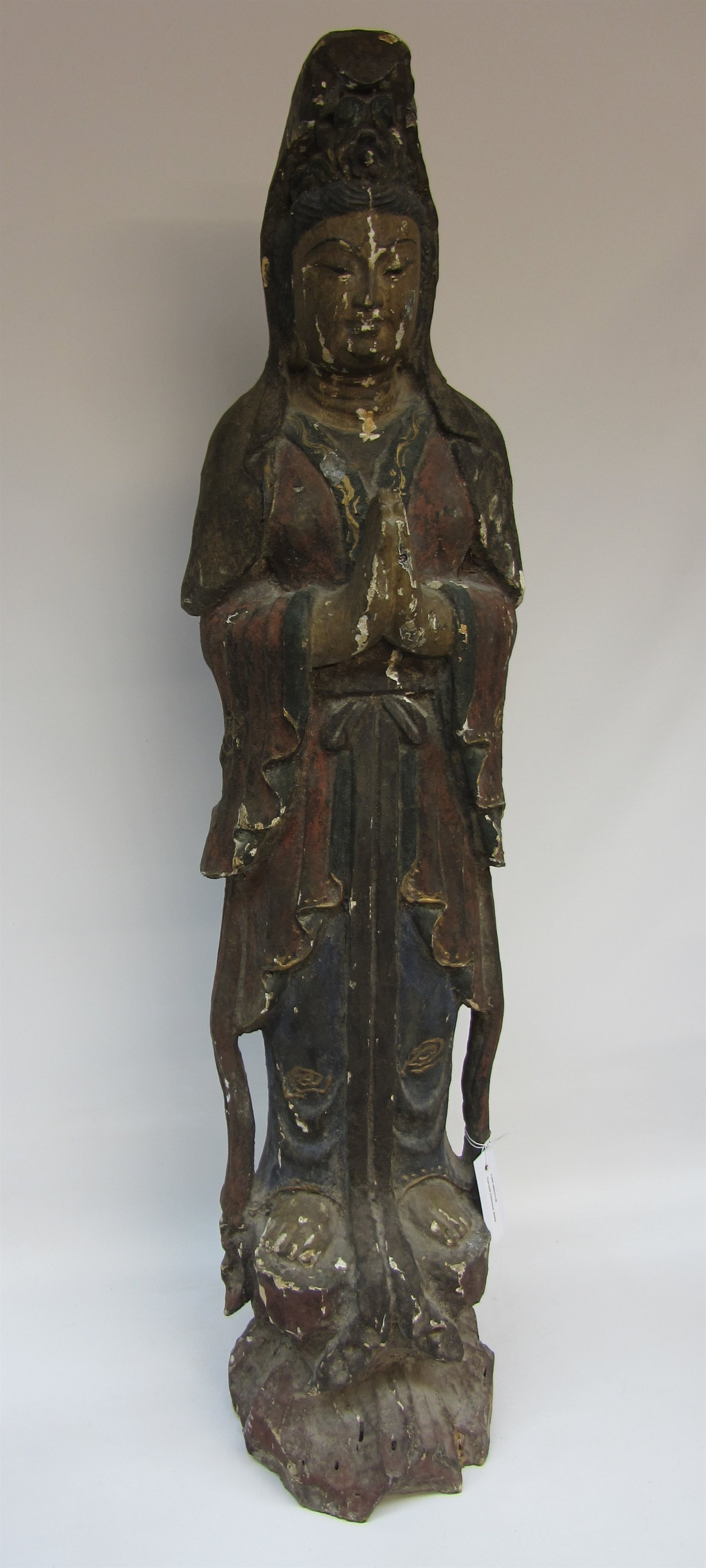 Large 18th/19th century Chinese carved wood and gesso polychrome decorated Temple Deity