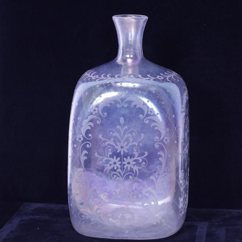 Large Continental Iridescent Glass Bottle form Vase or Jar with all over wheel cut lace design