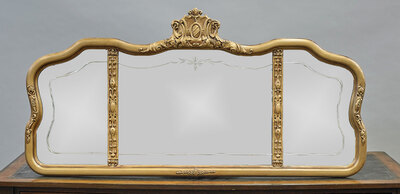 Large gilt wood mirror; comprising three panels; bordered with foliate designs; 25" x 52" (overall, approx.)