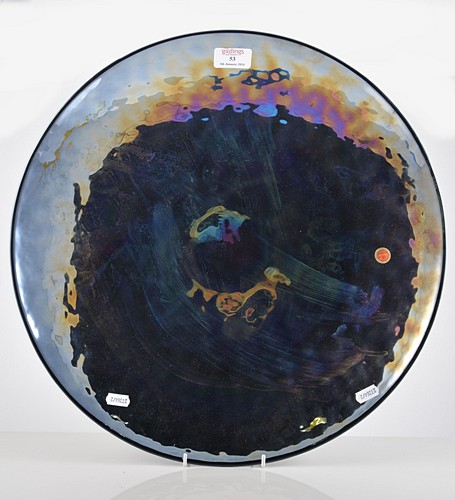 Large Murano circular shallow bowl, petrol design, diameter 45cm