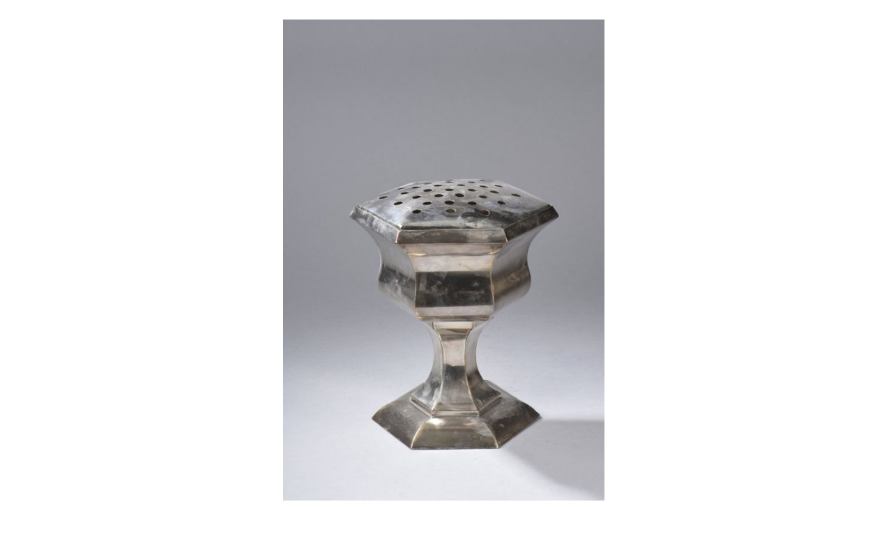 Large oval planter silver hammered copper simulating a scholarship open cord. We joined a large hexagonal picnic flowers in silv