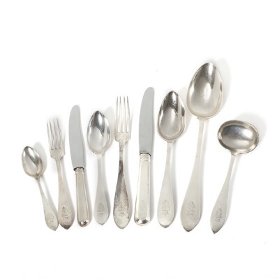 Large Russian silver cutlery, totally comprising 87 part