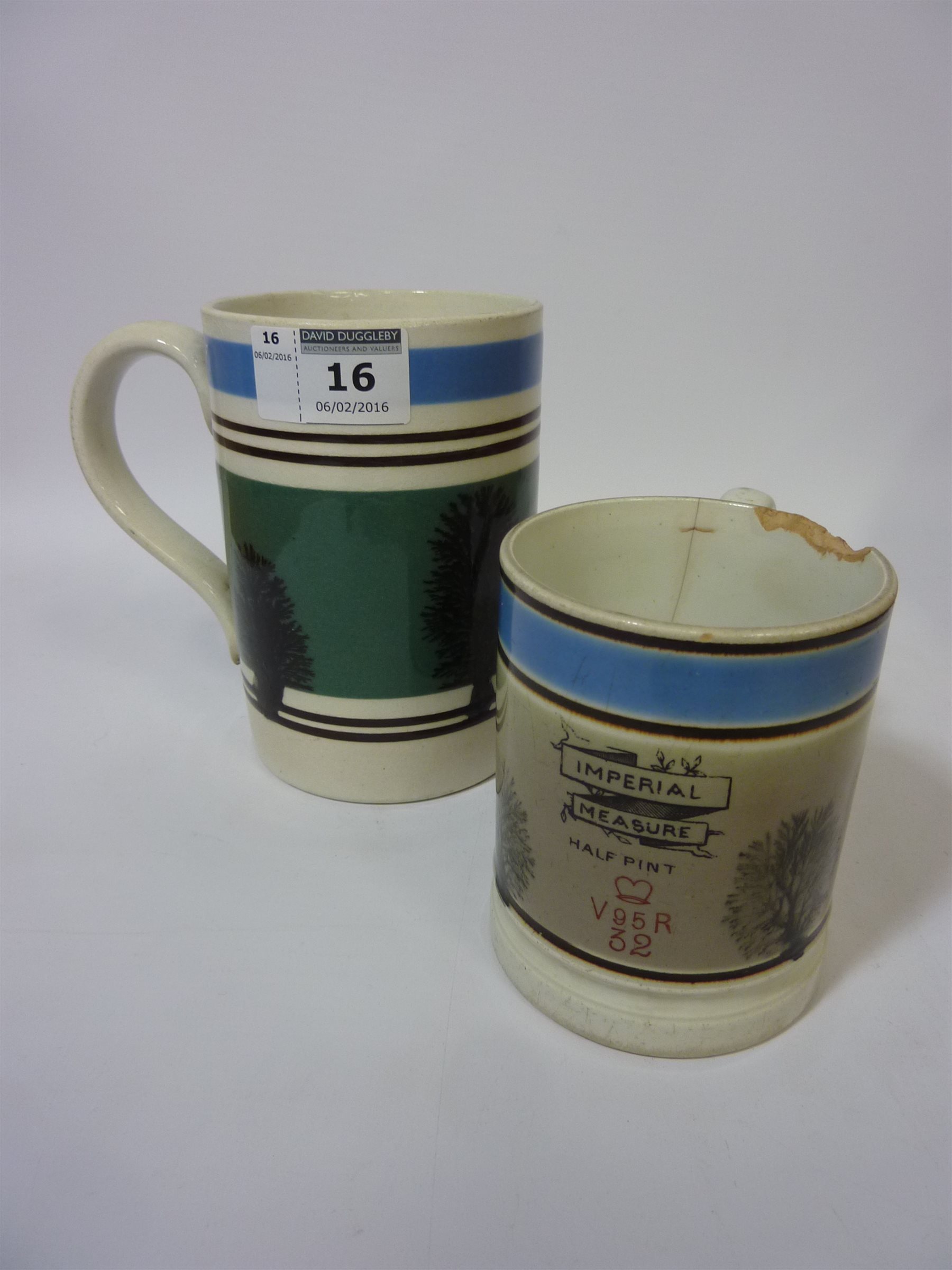 Late 19th century Edge, Malkin & Co.mochaware tankard H9.5cm and one other mochaware tankard