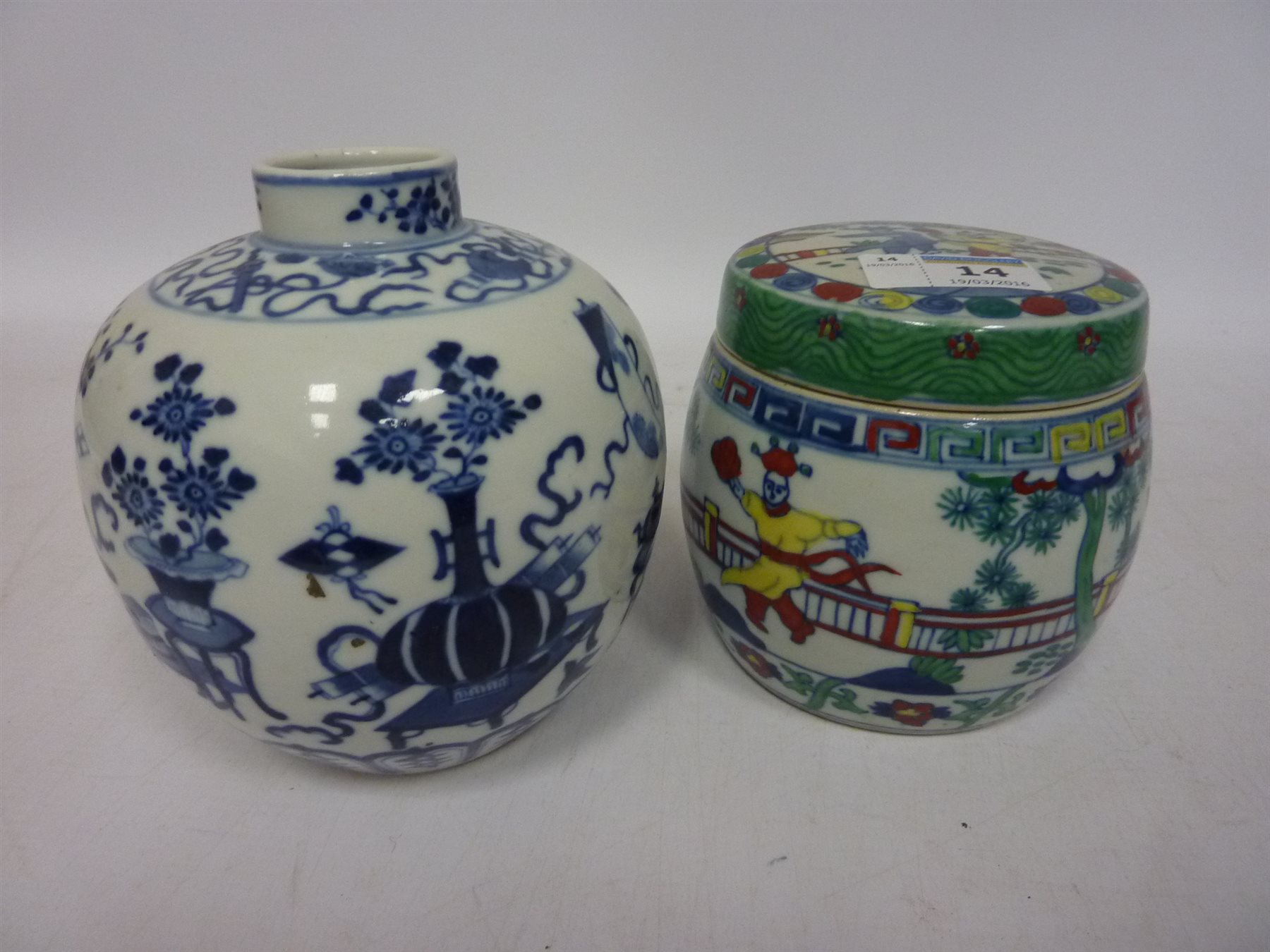 and white flask with four character mark to base H14cm and a 20th century Chinese covered jar