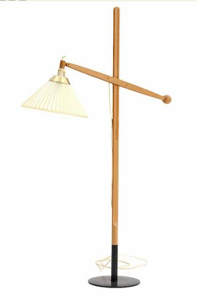 Oak floor lamp with black-lacquered foot, pleated acrylic shade