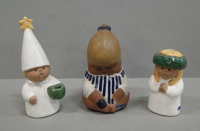 Lisa Larson, Gustavsberg 3st figuriner, Johanna H16cm, Lucia H11cm samt Stjärngosse H17cm, mössa med lagning