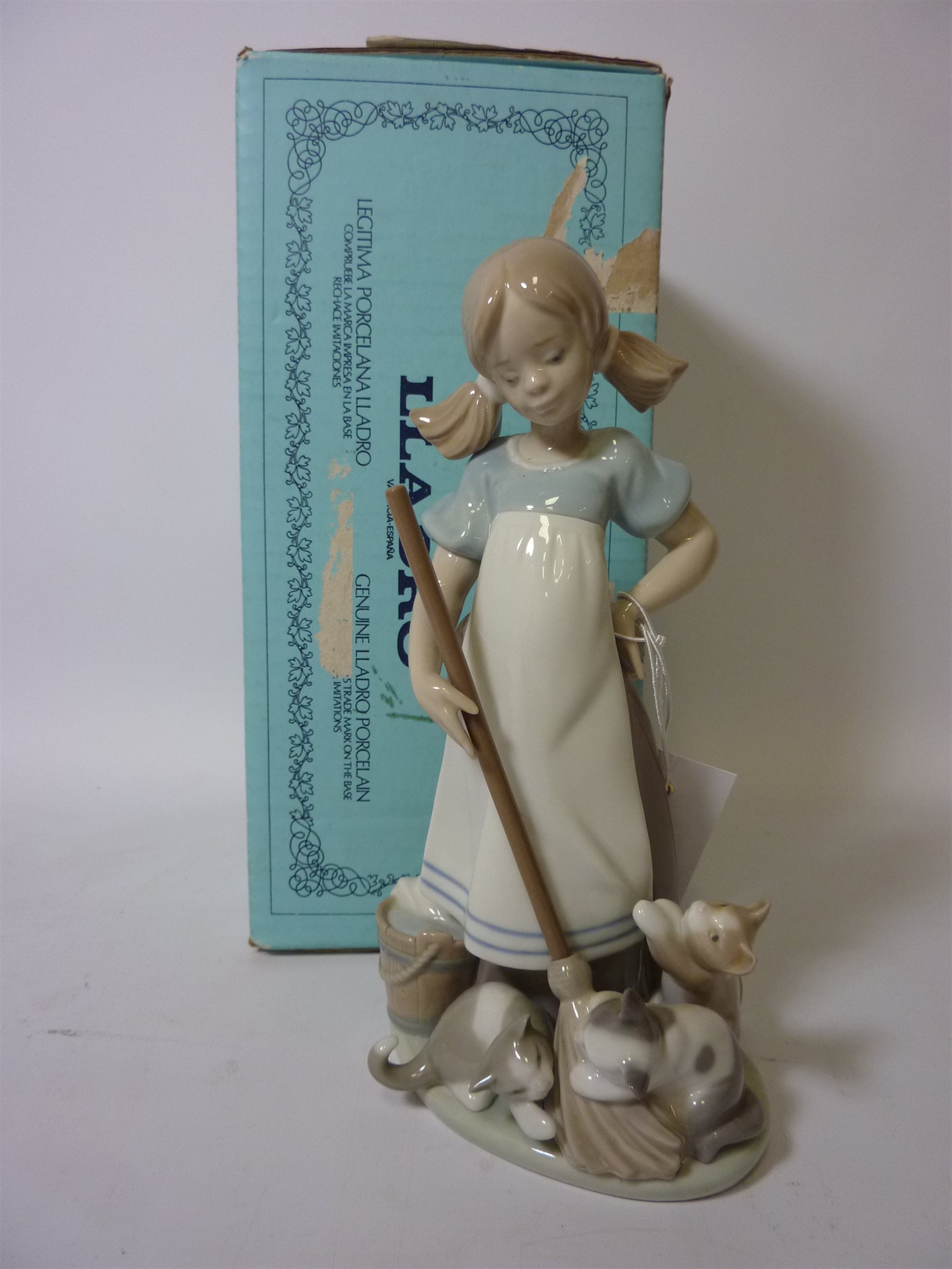 Lladro figure of a girl with cats