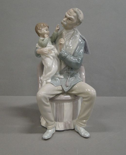 Lladro figuringrupp, farfar med barnbarn, H29cm