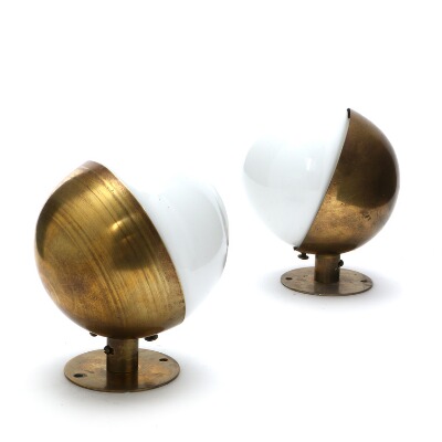 A pair of brass wall lamps with opal glass shades. Model 10630