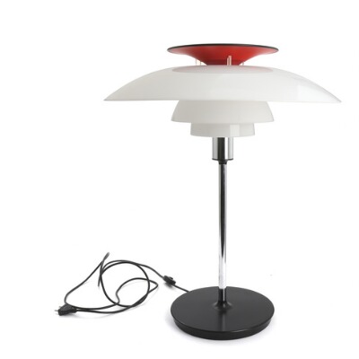 Table lamp with a chromium-plated frame on a black base, acrylic shades