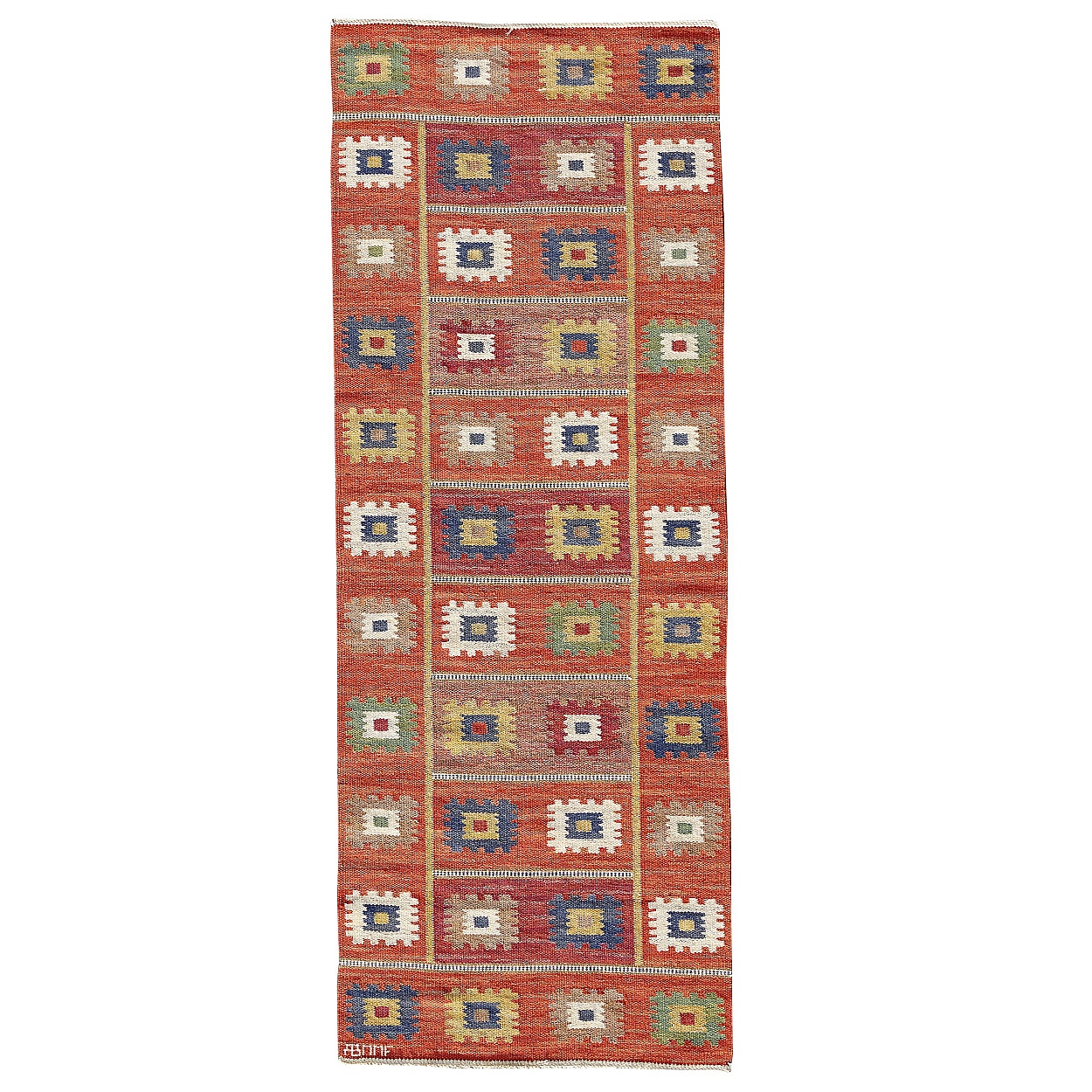 MÄRTA MÅÅS-FJETTERSTRÖM, "Röd grön äng", a flatweave carpet, designed in 1929, signed AB MMF, produced after 1941, 270 x 100 cm