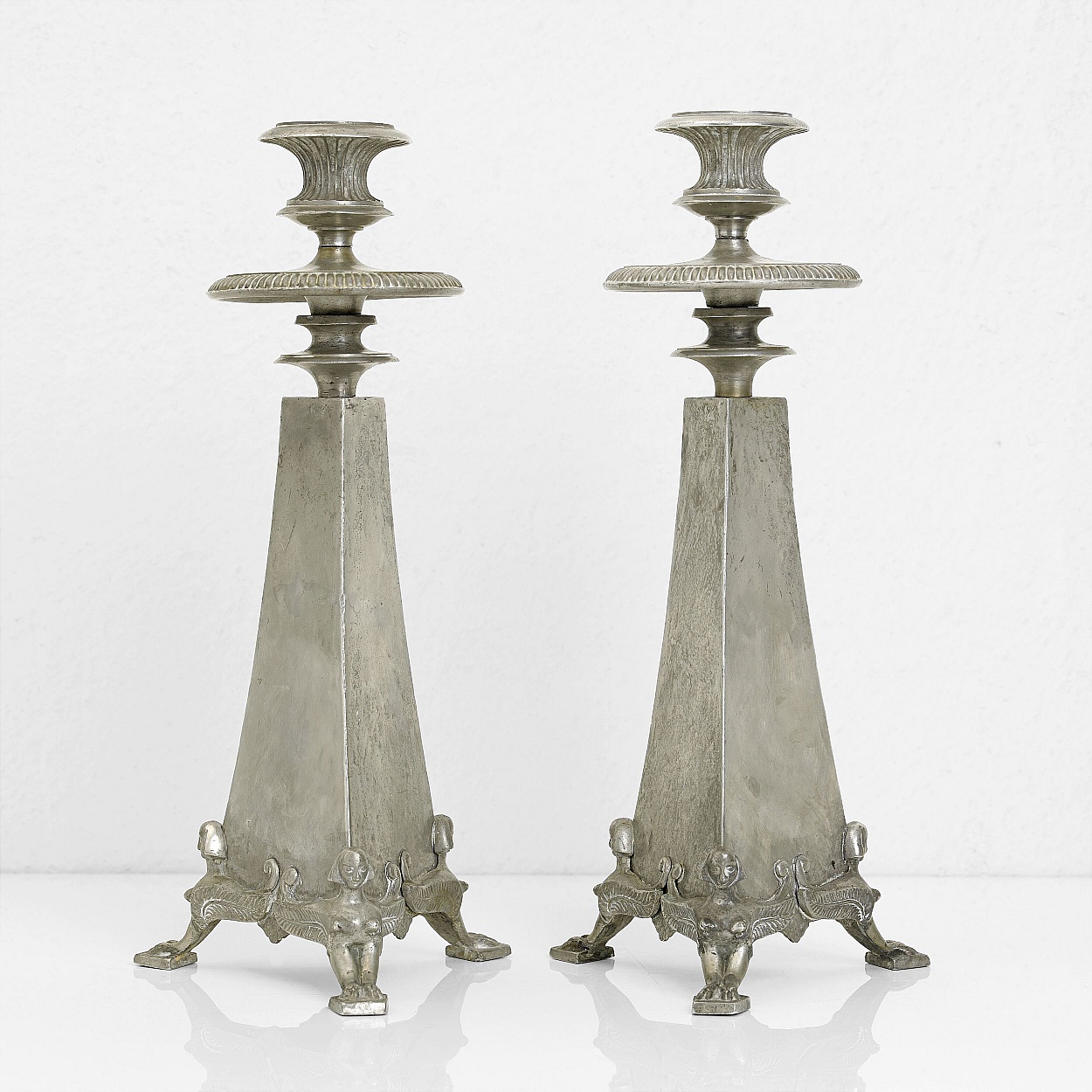 MELCHIOR WERNSTEDT, a pair of pewter candlesticks, Stockholm 1925, signed M. Wernstedt 1925, h 39 cm