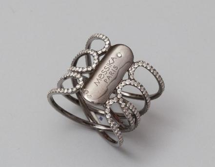 Bague dessinant des entrelacs d' or noirci, 750 MM, soulignés de brillants, total: 1,30 carat environ, taille: 53, poids: 5gr. brut