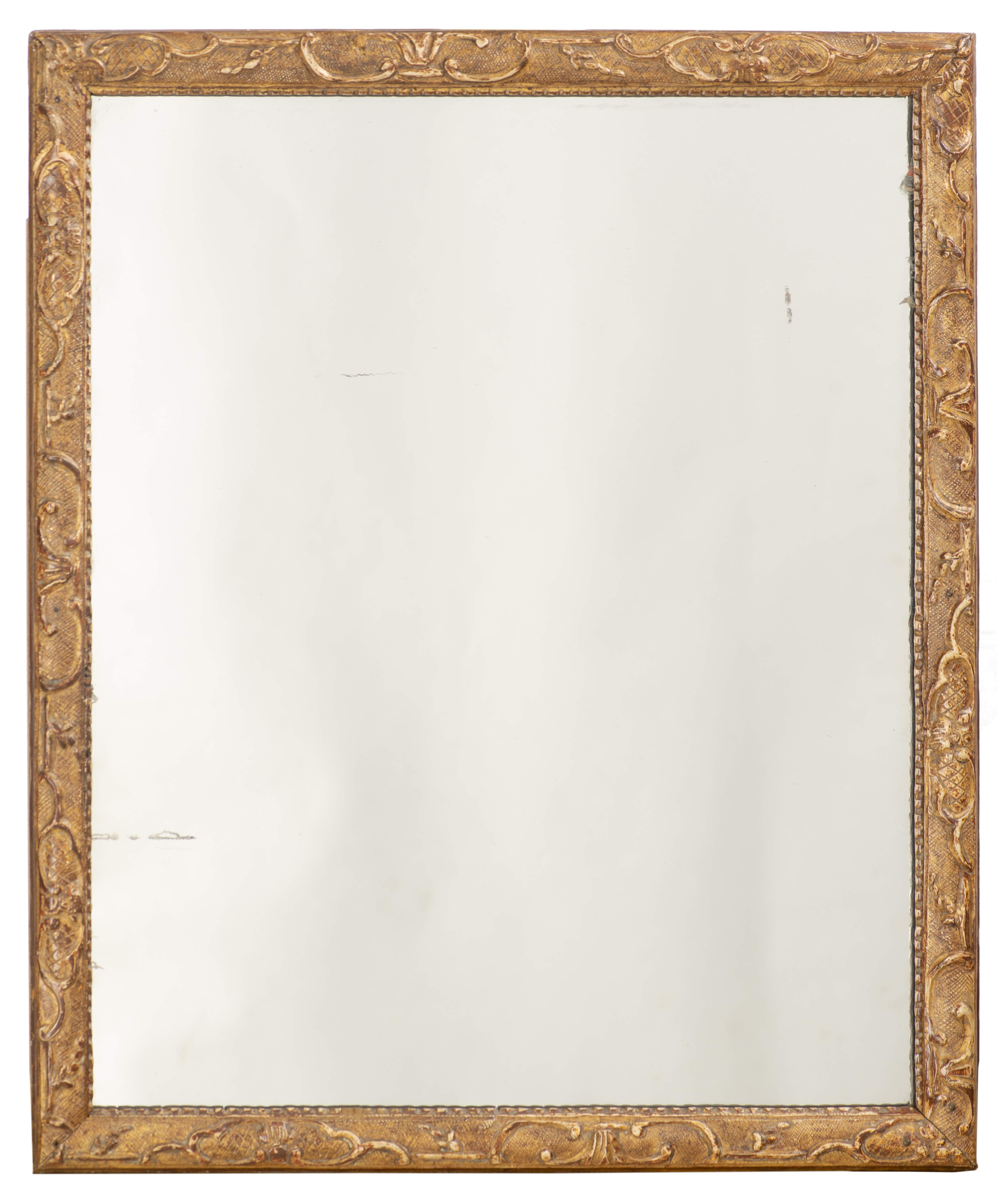 MIROIR RECTANGULAIRE EN BOIS ET STUC DORÉ, GLACE AU MERCURE