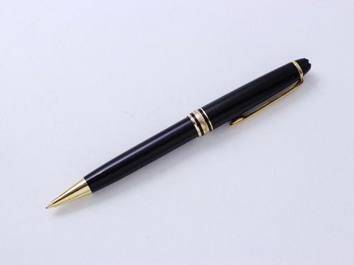 Pencil lead, black resin body and cap, gold-plated clip and rings, Montblanc emblem inlaid. Signed, numbered. (slight wear to the gilding and the resin)