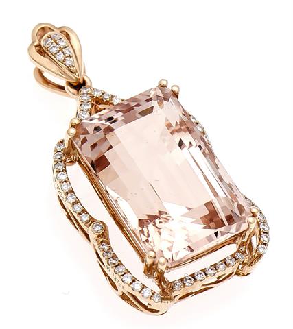 Morganit-Brillant-Anhänger RG 750/000 mit einem excellenten fac. Morganit 9,72 ct in excellenter Farbe und Reinheit sowie 59 Brillanten, zus. 0,187 ct TW/VS, L. 28 mm, 4,7 g