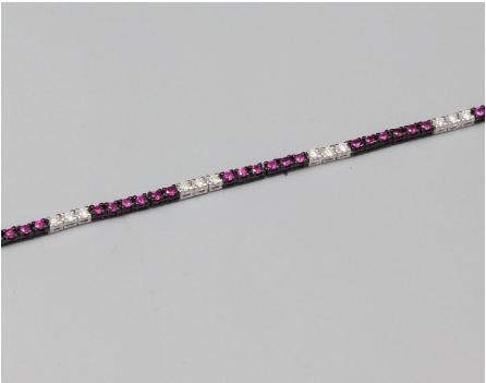 Nice bracelet online blackened gold, 750 MM, highlighted with rubies and diamonds, length: 17,20 cm, weight: 7,25gr. gross
