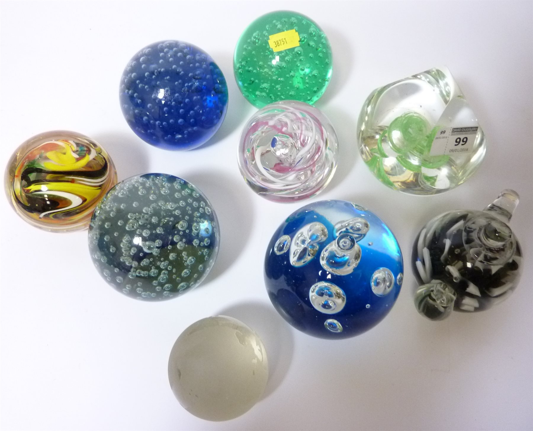 Nine assorted paperweights