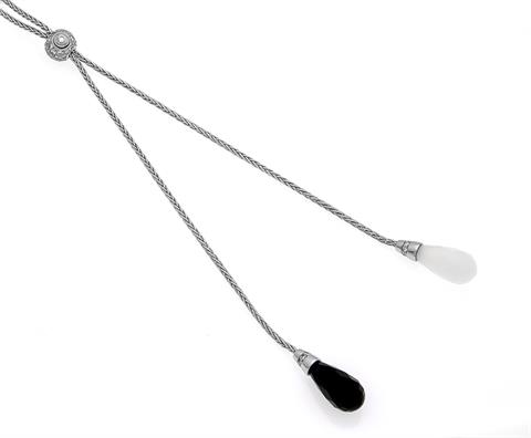 Onyx-Brillant-Collier WG 750/000, each with a white and black fac. Onyxpampel 15 x 8 mm, slider with brilliants, additional 0.50 ct W / SI, up to L. 60 cm adjustable, 17.8 g
