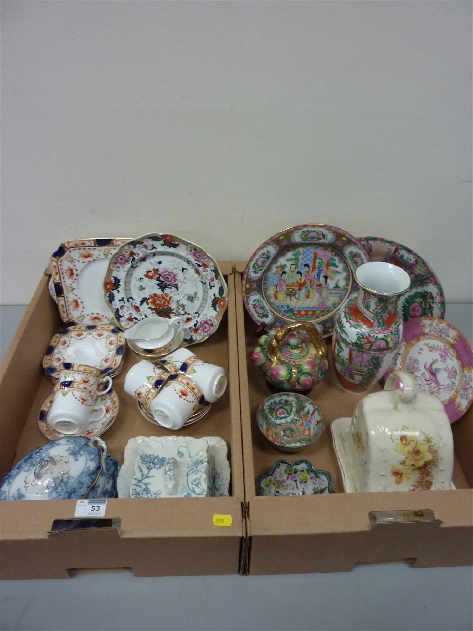 Oriental and oriental design decorative ceramics, Colclough teaware and other early 20th century china in two boxes
