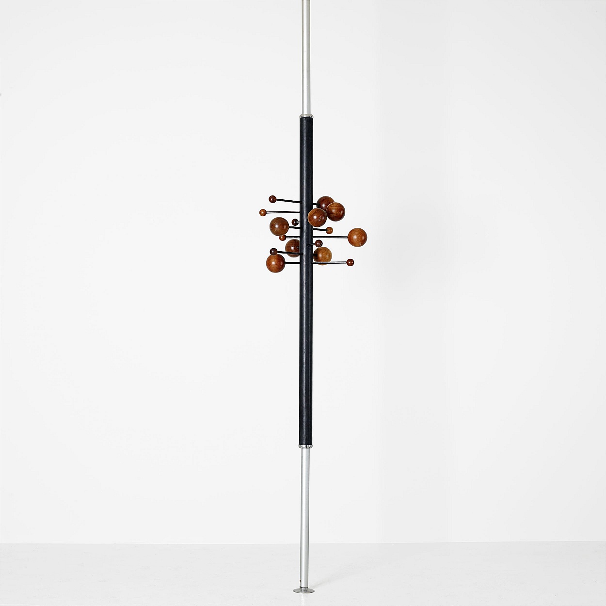 OSVALDO BORSANI, "AT61", a coathanger for Tecno, Italy, designd in 1964, black leather and wenge, walnut and teak, h 280 cm