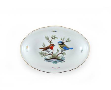 House painters decorated with native songbirds. Blue swords Meissen, 20th century. L 26,5 cm