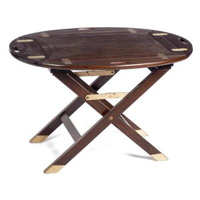 OVAL MAHOGANY MARINE TRAY ON X TRESTLES