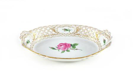 Zierdurchbruch. Rote Rose. Blaue Schwertermarke Meissen, 20. Jh. L 25 cm