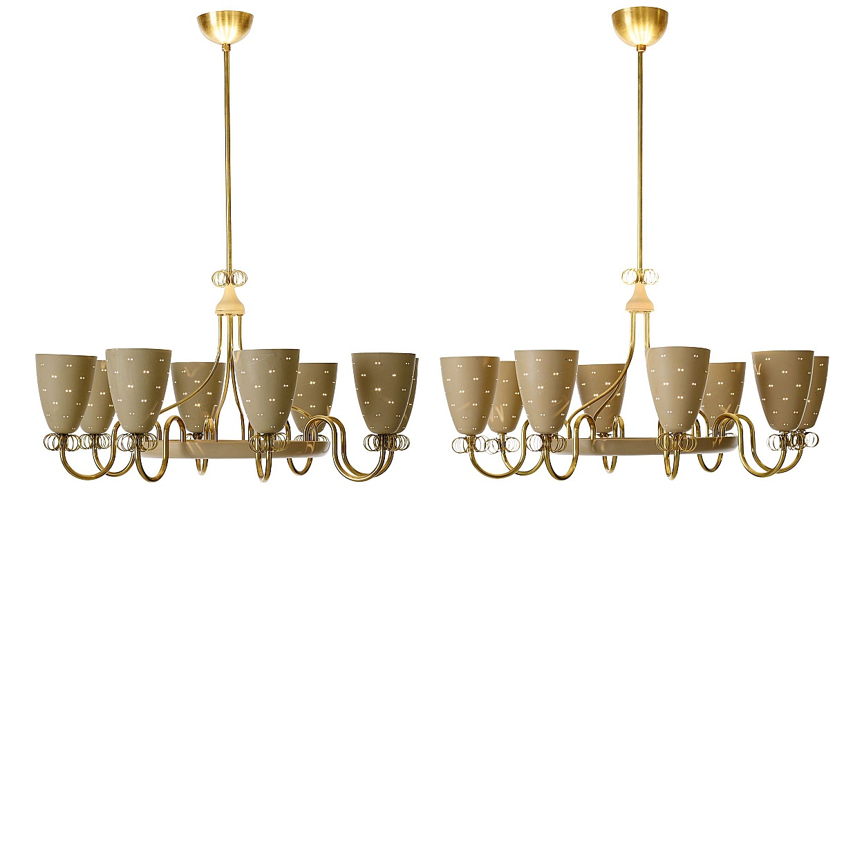 PAAVO TYNELL, attributed, a pair of chandeliers for Lightolier, Canada 1960's, h. 80 cm.