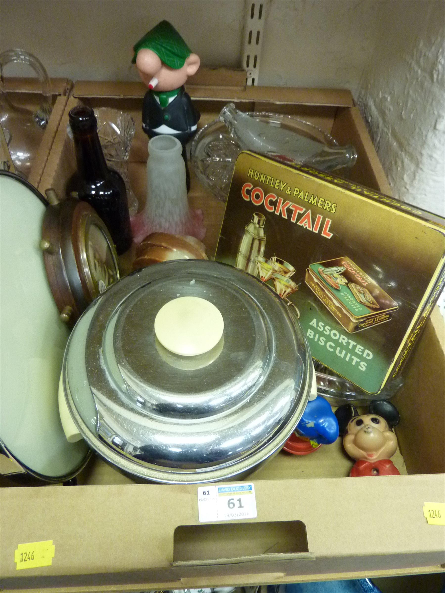 Huntley & Palmers 'Cocktail Assortment' tin and other vintage miscellanea in one box