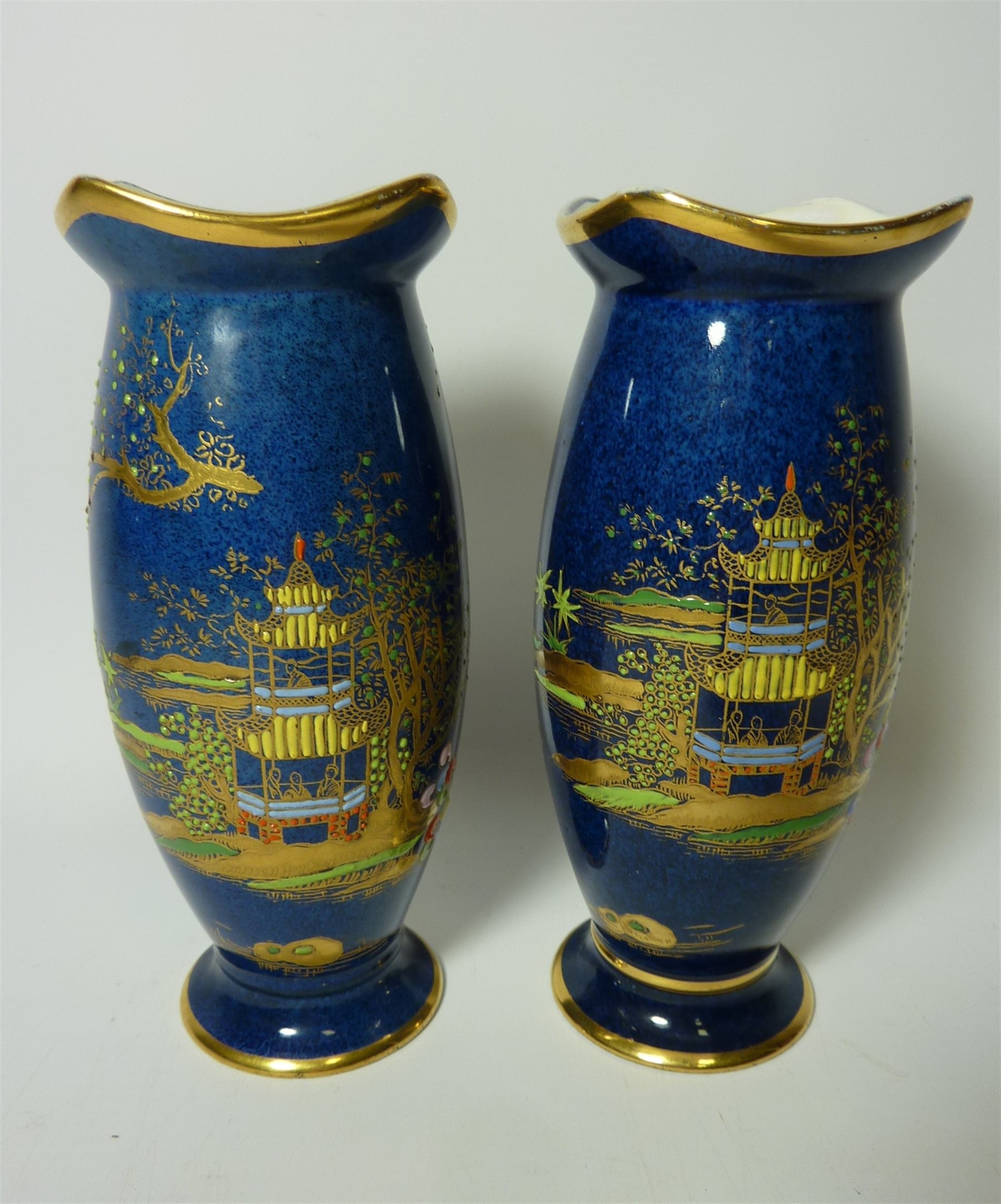 Pair Carlton Ware 'Barge' pattern vases H15cm
