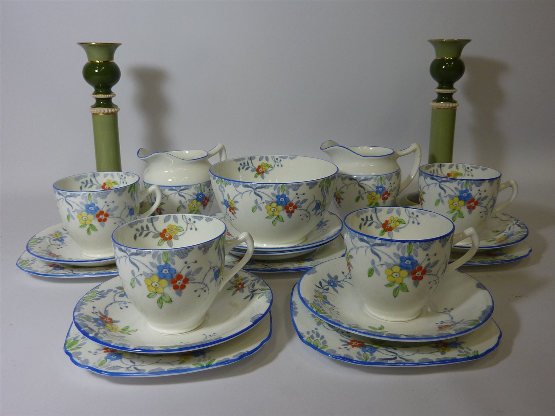 Pair Carltonware candlesticks H22cm and a Sutherland tea set