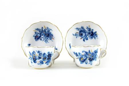 Blue German flower with insect. Gold decoration. Blue swords Meissen, 20th century.