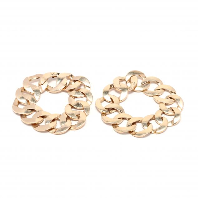 Lot Details & Additional Photographs Bracelets comprised of flat, oval links completed with a fold over clasp, stamped 14K.