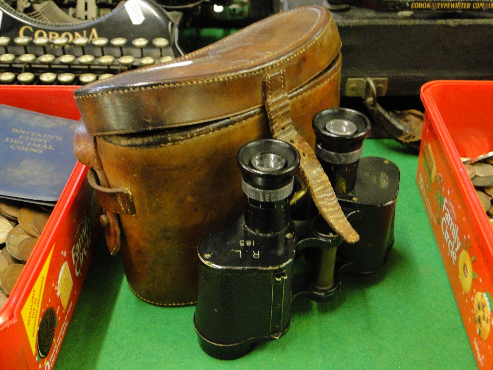 Pair of binoculars in leather case.
