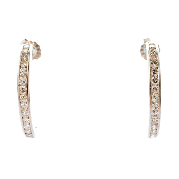 Each featuring eighteen single-cut diamonds weighing a total of approximately 1.00 cttw., set in a 14k white gold half hoop mounting.