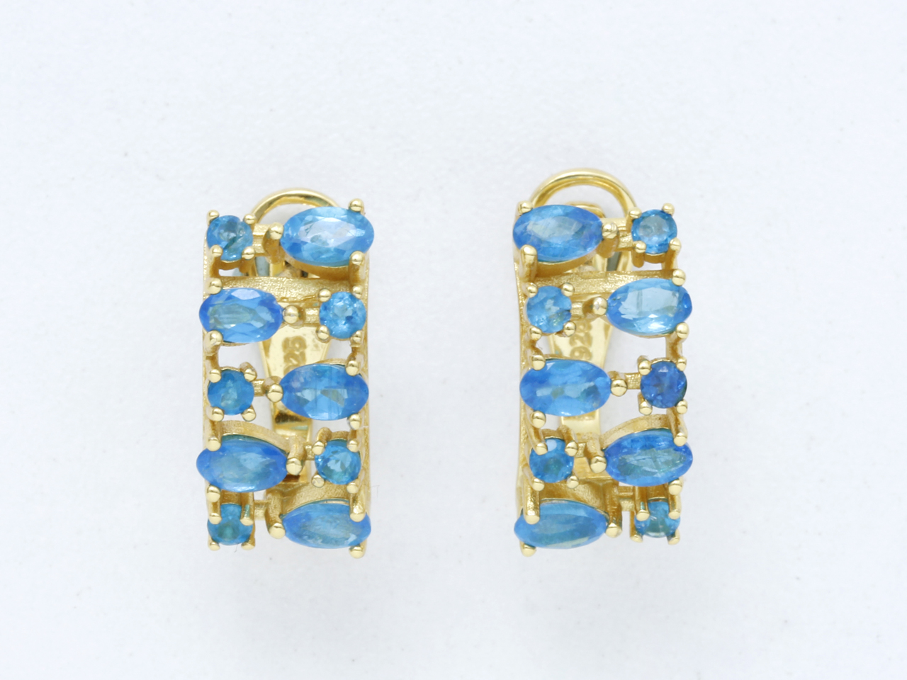 Pair of earrings in vermeil 800 thousandths, with openwork decoration, slightly curved, enhanced with round apatites and faceted oval in claw setting. (small lack of materials) Gross weight: 5.60 g. Dim: 2 x 0.9 cm.