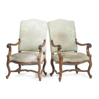 PAIR OF ITALIAN WALNUT ARMCHAIRS IN BAROQUE STYLE