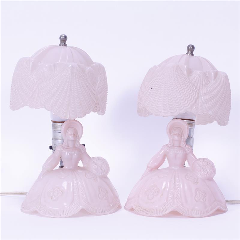 Pair of Pink Glass Lady Boudoir Dresser Lamps