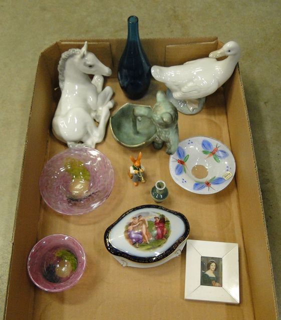 Nao figurin, miniatyrmålning signerad 3,5x2,5cm, John Andersson miniatyr, bonbonjär, björn samt glasvas