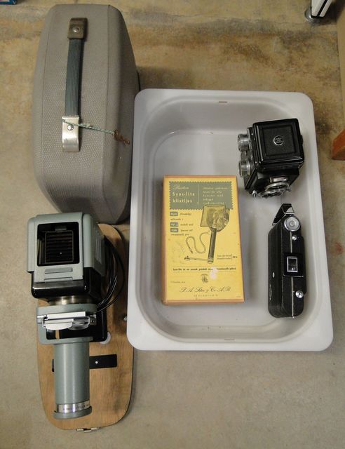 Parti bl.a. Leitz Wetzlar Diaprojektor Prado, Aires kamera Reflex m.m, för funktionen ansvaras ej