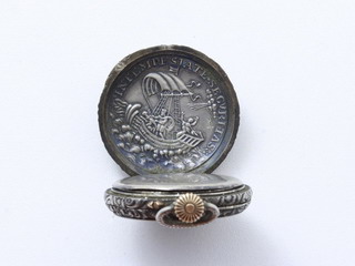 PATEK PHILIPPE Petite montre de poche en argent 800 millièmes, boîtier entièrement ciselé à décor feuillagé et de rocaille, le dos figurant ''Saint-Georges terrassant le Dragon'', à l'intérieur une scène représentant le Christ dans un bateau sur une