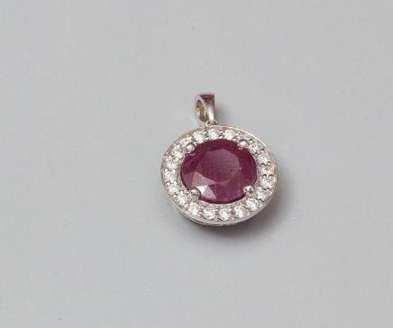 750 MM, decorated with an untested round ruby weighing 3.90 carats approximately surrounded by diamonds, total 0.50 carat approx weight: 3,8gr. gross