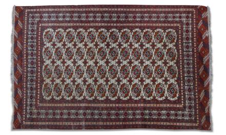 Repeating geometric patterns in vibrant red hues surrounded by borders