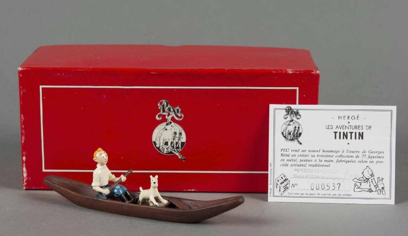 PIXI - Tintin - Tintin and HERGE MILOU canoe No. 537 4546 ref broken paddle album "The Broken Ear"